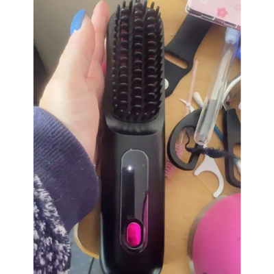 "A escova alisadora é tão fácil de usar, sério! Com todos os recursos bem ali, é como viver no futuro, onde tudo é super conveniente. Alisar meu cabelo nunca foi tão fácil e divertido!"